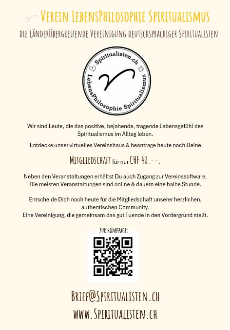 Möchtest auch du den Spiritualismus auf Grundlage der 7 Leitsätze zusammen mit uns leben und in deinem Alltag integrieren, freuen wir uns sehr, dich als Mitglied begrüßen zu dürfen.
